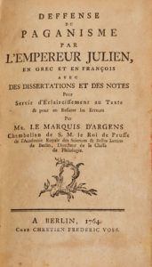 BOYER D'ARGENS (Jean-Baptiste). Deffense du paganisme par l'Empereur Julien.