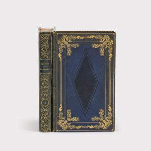 2 volumes in-16 (90 x 152 mm) maroquin bleu nuit a grain long, large encadrement de filets dorés, écoinçons, losanges à froid au centre, dos lisse orné, tranches dorées (Thouvenin).