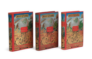 Paris, Collection Hetzel, s. d. [1908]. Cartonnage percaline rouge polychrome, dos type « Engel i », tranches dorées.