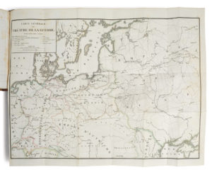 Un frontispice, quatre tableaux repliés & cinq cartes repliées dont une grande « Carte générale du théâtre de la guerre » aquarellée au trait.