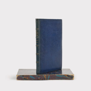 In-12 carré, maroquin bleu, dos à nerfs, tranches dorées, étui (Lortic).