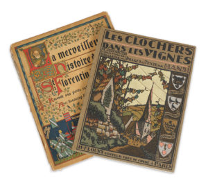 JOINT : HANSI. La Merveilleuse histoire du bon S Florentin d'Alsace. Paris, H. Floury, Editeur, 1925. In-4°, cartonnage illustré en couleurs de l'éditeur. É. O. Illustrations en couleurs par HANSI & HUEN. Dos manquant ; quelques rousseurs.