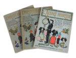 JOINT : • HANSI. L'Histoire d'Alsace racontée aux petits enfants d'Alsace et de France. Paris, H. Floury, Éditeur, 1913. Grand in-4°, cartonnage gris-bleu de l'éditeur avec titre et décor polychrome personnalisé ornant les plats (Engel rel.). Ill. en couleurs par HANSI et HUEN. Dos et second plat passés ; coiffes accidentées : charnières intérieures fendues avec dernier cahier décollé.