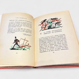 Paris, Marcel Seheur, Éditeur, s. d. [1928]. In-4°, maroquin vert sombre, large décor personnalisé en maroquin rouge, dos lisse, couverture illustrée en couleurs conservée, chemise à rabats en demi-maroquin rouge, étui (M. F. Jordan).