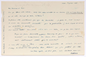 BELLMER Hans (1902-1975). L.A.S. « Bellmer », Castres 7 juillet 1945 ; 1 page oblong in-8. Lettre probablement adressée à un éditeur, lui demandant notamment l’adresse de Victor BRAUNER, « qui est resté, tant que je sache,...