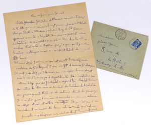 CHAISSAC Gaston (1910-1964). L.A.S. « G. Chaissac », [L’Oie 20 janvier 1955], à son « confrère » Pierre GIRAUD à Choisy-le-Roi ; 2 pages in-4, enveloppe. Félicitations pour l’heureuse nouvelle, « et merci de...