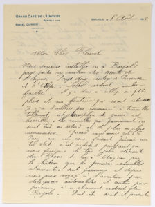 DUFY Raoul (1877-1953). L.A.S. « Raoul Dufy », Barjols 1er août 1914, à Fernand FLEURET ; 1 page et demie in-4 à en-tête du Grand Café de l’Univers, Barjols. Belle lettre juste avant le début de la Grande Guerre. Il est...