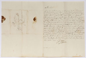 GREUZE Jean-Baptiste (1725-1805). L.S. « Greuze », 20 germinal (9 ou 10 avril), au citoyen Tupinier, à Tournus ; 1 page in-4, adresse, traces de cachet cire rouge. Il s’inquiète de sa santé, n’ayant pas reçu de...