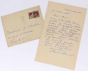 faire déposer « chez Meyrowitz les deux dernières lunettes de Zeiss. Vous pourrez y passer. Un deuil cruel m’empêche de vous recevoir pour l’instant »… [Il s’agit de sa belle-fille Marthe HOSCHEDE,, fille de sa femme Alice, qui avait épousé en 1900 le peintre américain Théodore BUTLER ; elle était morte le 9 mai.]