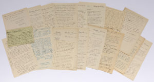 Claude Monet, sa vie, son œuvre (G. Crès, 1922). 1919. 10 décembre. « J’ai accepté d’écrire sur vous & votre œuvre, un volume, et même deux, dans la collection Bernheim, et je dois faire appel à vos souvenirs. Me prêteriez-vous vos collections d’articles, de lettres ? »… 1920. 12 juillet, il explique les motifs qui l’ont amené à renoncer au projet de livre pour la maison Bernheim… – 20 octobre, il espère aller le voir, s’il trouve un ami à automobile… 1921. 15 février. Il vient de relire les centaines de lettres qu’il a reçues de Monet depuis 1883 et il ressent une grande émotion devant « les preuves d’une amitié si fidèle, si affectueuse, si tendre. Oui, j’ai eu en vous un ami précieux, et je voudrais que vous en pensiez un peu autant de moi »… – 25 février, il demande ses souvenirs de la Brasserie des Martyrs : « Qui y avez-vous particulièrement connu ? Courbet, Baudelaire, Pelloquet, Daudet, Du Boys, Rolland, Charles Bataille, etc. ? » Questions aussi sur ses rencontres avec Boudin, Jongkind, Courbet… – 6 mars, projet de visite à Giverny avec Paul Léon, peut-être le ministre Léon Bérard, et si cela ne dérange pas Monet, avec son éditeur Crès… – 10 mars, rendez-vous le dimanche 13 avec Bérard et Léon… – 19 mars, il lui conseille de mettre ses Nymphéas non pas aux Gobelins, mais dans la Salle des Tuileries, « au cœur même de Paris »… – 11 juin, il fait rapporter les documents que Monet a prêtés par deux amis, Achille Astre, et Charles Léger, « apôtre de Courbet », priant Monet de leur montrer ses ateliers, sa collection, et le bassin des nymphéas : « Ce sera un souvenir pour toute leur existence, et ils sont dignes de le ressentir et de le conserver »… – 19 septembre. Mme Mirbeau demande qu’il signe une pétition au Conseil municipal de Paris… « Crès est-il retourné vous voir avec son photographe ? A-t-il photographié votre portrait par Renoir ? ». – 23 septembre, il a terminé son Claude Monet, mais non le roman commencé l’an dernier : « j’ai été littéralement assailli par les affaires de l’Académie Goncourt, avec quelques sales injures en complément », ainsi que des défections, notamment de Frantz Jourdain, Ajalbert, Descaves… – 25 octobre, il a le projet de venir avec Léon Marotte prendre quelques photographies pour compléter son livre… – 29 octobre. La santé de sa sœur l’empêche d’accompagner Marotte… – 3 novembre. Il prie Monet de se prononcer sur les reproductions en couleurs, sur épreuve ; il donnera une courte liste de toiles à Marotte : « C’est un artiste consciencieux qui sera le premier à vous dire ce qu’il peut et ce qu’il ne peut pas »… – 5 novembre. « Avant mon entrée aux Gobelins, vous aviez envie de faire un tapis de nymphéas. Pourquoi ne le feriez-vous pas, lorsque, toutes vos visites reçues, vous vous remettrez à la peinture ? Vous seriez le maître des dimensions, et vous me diriez les conditions de votre travail »… – 11 novembre : « Ne m’écrivez plus. Cela vous rend de trop mauvaise humeur de lutter avec votre encrier et votre porte-plume. Reprenez vos couleurs et vos brosses, et faites-moi un bassin de nymphéas »… Il va lui rendre les documents utilisés pour son Claude Monet : « N’en avez-vous pas d’autres ? Lettres de Courbet, Manet, Mirbeau Mallarmé, etc. ? Pouvez-vous me dire aussi la date exacte de votre mariage »… (MONET a noté en marge au crayon : « 28 juin 1870 ».) Il l’exhorte à accepter la Salle des Tuileries pour les Nymphéas, non seulement pour lui, mais « pour tout le mouvement auquel vous avez si bien participé et que vous avez dirigé par votre œuvre. Vous devez cela à votre temps, à vos compagnons, aux idées que vous avez servies »… 1925. 12 août. Il déjeune à Kervillaouen : « ce qui n’a pas changé, c’est votre mer, c’est votre côte sauvage, à jamais fixées par votre génie pictural, – et ce qui n’a pas changé non plus, c’est ma tendre amitié scellée ici en 1886 »… On joint 2 L.A.S. [à CLEMENCEAU], Paris 2 et 6 avril 1922, à propos d’une préface pour son Claude Monet ; Clemenceau n’ayant pu faire cette préface, Geffroy lui dédie le livre. Provenance : Archives Claude MONET ; Michel MONET ; son petit-fil Michel CORNEBOIS (vente Arcurial, 13 décembre 2006, n° 128.