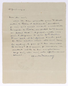 de Pélléas et Mélisande”, pourtant, je crois qu’il aurait consenti à voir reculer la reprise de Pélléas au profit de “l’Œuvre du soldat blessé” ! À propos, voulez-vous avoir l’obligeance de prier Melle Bailac d’une part, et Mr Azéma d’autre part de bien vouloir venir chez moi dans la matinée, le jour qu’il leur conviendra le mieux ? À l’avance, je remercie ces excellents artistes de leur complaisance »… Correspondance, 1915-67.
