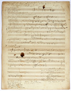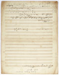 OFFENBACH Jacques (1819-1880). MANUSCRIT MUSICAL autographe ; 1 page et demie in-fol. (35 x 27 ;7 cm). Feuillet d’esquisses musicales, à l’encre brune sur papier à 20 lignes. De nombreux thèmes sont notés, dont un marqué...