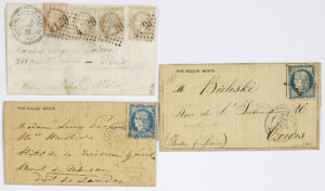 Siège de Paris : Ensemble de deux Ballons Montés et d'une Boule de Moulins dont: - Gazette des Absents n°19 : ayant voyagé avec le Tourville à destination de Tours, - Gazette des Absents n°32 - Cambronne : 20c. Siège (Y&T...