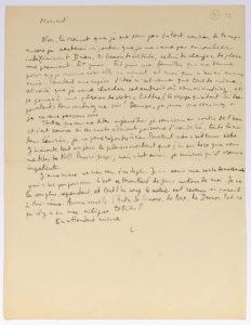 Lévy, elle sera plus tard l’épouse de Pierre Naville. Elle inspira à Aragon le personnage de Bérénice dans Aurélien. Cet été 1924, Aragon passe ses vacances à Guéthary chez Drieu La Rochelle.] Il ne sait combien de temps il restera, « outre que je ne veux pas encombrer indéfiniment Drieu, le besoin de solitude, celui de changer de place me prennent. [….] Et puis ma famille qui me tanne pour que je vienne […] et moi qui n’en ai aucune envie. […] je veux rechercher cet endroit où vous viendriez, et je pense à une phrase de votre lettre (Ce voyage était si beau pourtant). Vous voudriez me voir. Denise, je pense que vous savez si je ne veux pas vous voir. Tout ce que vous me dites : aujourd’hui je vous écris au sortir de l’eau et c’est comme si les mots étaient poisseux d’eau salée, toute la mer dans l’encrier, je ne peux répondre à rien ». Ce qu’elle lui a dit de Marcel NOLL lui a donné un « plaisir méchant […]. Pauvre garçon […] je suis ravi qu’il vous impatiente. J’aime mieux ne rien vous dire de plus. Je me sens une sorte de méchanceté qui n’est pas pour vous. C’est ce brouillard de gens autour de moi. […] Aucune nouvelle d’André [BRETON], de Simone, de Max [ERNST], de DESNOS. Est-ce qu’il y a eu une éclipse totale ? »…