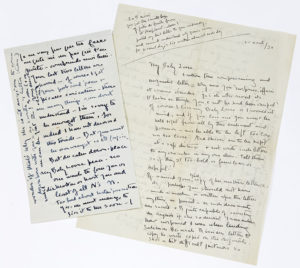 Après leur brève liaison, Nadine Hwang (née en 1902) travaillera pour Natalie en tant que chauffeur, secrétaire et assistante… Samedi [4 août]. Elle conjure « Baby Loose » de se calmer : « Why are you so frantic ? ». Elle assure que personne ne la forcera à quoi que ce soit : « Je ne veux pas que tu fasse un geste ni un pas qui t’en coûte ». Ses deux dernières lettres étaient terribles. Elle a bien reçu sa carte et la caricature de Picasso. Il y a bien des choses que Nadine ne comprend pas ; « but calm down, peace my Baby Loose peace ». Personne ne lui veut du mal… 10 août. Elle lui retourne sa lettre compromettante et énigmatique ; pourquoi était-elle « “surprise, effarée et comme étourdie” […] It looks as though you & not he , had been “vamped”! Of course I love my Baby Loose or I wouldn’t mind »… Elle ne devrait pas être laissée « “too long nor too loose” And thieves are to be kept at safe distance »… R. [Romaine BROOKS] a bien reçu les copies dactylographiées des lettres de sa mère, mais Nadine aurait dû s’abstenir d’écrire sur les lettres, « such documents are sacred ». Elle se souvient comme elle été surprise quand elle a prêté à Salomon REINACH les lettres de Renée VIVIEN : il avait écrit “copié” sur les originaux. Romaine est un peu difficile en ce moment. Si Nadine les rejoint la semaine prochaine, il faudra faire attention et être prudentes jusqu’au départ de Romaine pour l’Italie. « I dont want my Baby Loose to miss any more of her vacation »… Elle parle ensuite de problèmes de service et de l’emploi des domestiques, elle ne veut pas engager un autre Tonkinois, en plus du chauffeur et du cuisinier, etc. Elle espère qu’elle a bien reçu les pâtes de fruits de Saint-Raphaël, et termine : « I want my Baby Loose safe in my arms soon-soon. Love n’s N. N’s n. »…