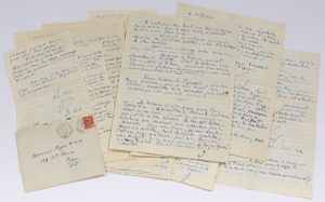 au restaurant, échanges sur l’actualité littéraire et jugements sur leurs lectures et leurs contemporains. Janvier-février 1951. « C’est le temps où les romanciers sont devenus tristes et où le roman est mort ». Il évoque Marcel AYMÉ, dont les nouvelles sont « bien agréables », Pierre Mille, Duvernois, et surtout MAURIAC : « Le Diable a joué un mauvais tour à Mauriac. Il a seulement fait grincer sa plume, grimacer ses figures et salit partout. Le genre sordide […] n’est pas le vrai Mauriac. Il est la jeunesse, la spontanéité, la grâce, à la fois frêle et robuste, et il a un beau style ». La situation politique inquiète Chardonne ; il voit le danger des Russes, et la nécessité d’une armée européenne et « océanique ». Mai-juin 1956. De nouveaux noms apparaissent : Bernard FRANK, Françoise SAGAN, Jacques LAURENT, Jean-Louis CURTIS dont il lit Un saint au néon. Il ne ménage pas André BILLY, « le critique le plus sot qui ait jamais existé ». Il signale le bel article sur les Matinales par Jean GUITTON, « un vrai mystique ; et un philosophe ». Mondor lui envoie son livre sur Barrès ; il rencontre l’éditeur Julliard « un homme bien antipathique, Espèce de hareng sot », qui lui annonce que Schoeller va épouser Sagan ; Jean Rostand « un phénomène » … Chardonne dit son admiration pour Paul MORAND : « Morand c’est du champagne. Jouhandeau, je crois bien que c’est de la piquette » ; et il fait suivre à Nimier 4 L.A.S. de Paul MORAND écrites de Tanger en mai 1956 (6 pages in-8 et in-4) : 4 mai, à propos d’un article dans La Parisienne sur Mauriac journaliste et romancier ; 29 mai , où il résume ses années de jeunesse et d’études et évoque la situation du Maroc qui vient juste d’acquérir son indépendance ; 30 mai, où il dit la beauté de l’Afrique « avec ses présents empoisonnés […] les jolis coins à la Delacroix » ; il évoque l’auto-destruction des jeunes,« à quoi Nimier ajoute la destruction en auto », le climat d’inquiétude actuel, et il se remémore Giraudoux qui n’avait pas peur, et qui « se moquait des Américains et des Juifs […] comme Proust ; mais ce n’était pas un complexe comme chez Proust »… Etc.