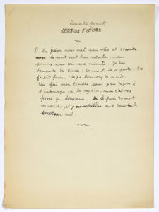 COCTEAU Jean (1889-1963). POÈME autographe, Rencontre la nuit ; demi-page in-4. Poème en prose, dont le titre primitif, Nuit de fièvre, a été biffé. Nous ne l’avons pas retrouvé dans les Œuvres poétiques complètes de la Pléiade. « Si la...