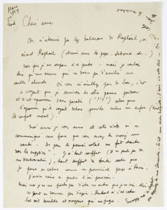 COCTEAU Jean (1889-1963). L.A.S. « Jean », Saint-Cloud Mars 1929, à Judith ÉRÈBE ; 1 page in-4. Belle lettre lors de sa désintoxication de l’opium. « On n’admire pas les tableaux de Raphaël, on aime Raphaël. Non que je me compare à ce...