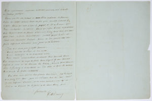 DUMAS père Alexandre (1802-1870). L.A.S. « Al. Dumas », [1848 ?], à un « cher confrère » ; 2 pages in-4 sur papier vert d’eau (lég. fente au pli). Intéressante critique d’un drame. Dumas prie d’excuser sa franchise, mais d’un «...