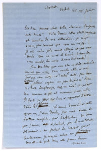 FLAUBERT Gustave (1821-1880). L.A.S. « Gve Flaubert », Croisset Vendredi soir 28 juillet [1876], à Jeanne de TOURBEY, comtesse de LOYNES ; 2 pages et quart in-8 sur papier bleu. Belle lettre tendre et mélancolique. « Eh bien, pauvre chère...