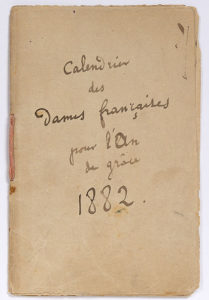 FRANCE Anatole (1844-1924). MANUSCRIT autographe, Calendrier des dames françaises pour l’An de grâce 1882 ; carnet de 13 pages in-12 écrites au recto, lié d’un ruban rose. Joli petit manuscrit composé d’une page de titre et d’une page...
