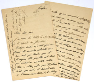 à se former le tempérament » ; ayant eu une forte bronchite, on l’a renvoyé. « Je n’ai goûté de la caserne que deux jours de chambrée et 8 d’infirmerie. – Jugé poitrinaire achevé, j’ai passé quelques jours assez moroses comme tu penses, car j’ai toujours vécu, agi, écrit, souhaité, comme si j’avais assez longtemps à vivre ». Il a dû se soigner avec rudesse : « cessation presque complète de travail de bête, course perpétuelle, escrime, patinage quotidien, nourritures archi abondantes etc. […] Ce régime, comme tu comprends, m’était insupportable ». Il a pu partir en Espagne avec sa mère : « à Séville j’ai revu les cigognes de Strasbourg, et près de Barcelone j’ai pensé bien longuement à tous ces souvenirs que les tiens y avaient pu laisser »… On joint 12 L.A.S. de SAINT-GEORGES DE BOUHÉLIER, 1899-1947, à André Magre.