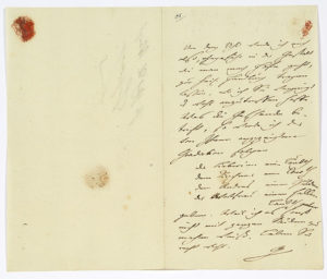GOETHE Johann Wolfgang von (1749-1832). L.A.S. « G », [Weimar 1er décembre 1795], à son ami le conseiller privé Christian Gottlob von VOIGT ; 1 page in-8, adresse ; en allemand. Au sujet du baptême d’un fils de son ami le conseiller Carl...