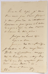 intercalations. Cependant on peut imprimer à la suite de ce qu’on a déjà et dans l’ordre ci-dessous les trois pièces : Puisque nos heures &c. Espoir en Dieu Puisque mai tout en fleurs &c. Je tâche de vous envoyer demain N.-D. [Notre-Dame de Paris] et Cromwell. Envoyez-moi de bonnes feuilles. –Avez-vous songé à un bel exemplaire pour Mlle Louise BERTIN ? »…