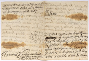 vous dire le deplaisir que jay de ne pouvoir aller moymesme vous temoigner la part que je prens a la grace que vous aves acordee a Mme de ST AMANT et a Mme de BOISDAUPHIN pour ma fille. Jay souffert avec patience jusques a cette heure plusieurs incomodités qui mostent le pouvoir de faire des visites et mesme avec un peu de plaisir davoir quelque excuse a ma paresse mais je vous advoue madame qua cette heure que jay un si juste subject de me procurer lhonneur de vostre conoissance jay un regret que je ne vous puis exprimer de ne pouvoir en vous allant rendre mes plus humbles remerciemens vous tesmoigner la parfaite estime que jay tousjours eue de vostre merite et de vostre vertu, dont jay peutestre plus de connoissance que vous ne penses, car je doute si vous scaves lhonneur que madame vostre sœur me faisoit de maymer beaucoup et combien javois de tendresse pour elle »…