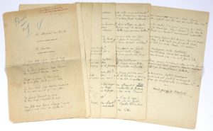 l’impression d’une publication en revue, est daté en fin « Août 1914 » et signé. Le premier poème, Le Tambour, compte 40 distiques : « C’était toute paix dans le bourg Lorsqu’un jour tonna le tambour »… Le second poème, Ce qu’ont dit les mobilisés, compte 27 tercets : « Puisqu’ils ont déclaré qu’ils nous prendraient nos terres, Qu’ils passeraient sur nous comme un vent de misère Et qu’ils se chargeaient bien de mettre en deuil nos mères »… Ils ont été recueillis dans Légendes de la guerre de France (Fasquelle, 1917). On joint 14 L.A.S. d’Albéric CAHUET à Marise Dalbret, 1939-1942, où il est notamment question d’Henri Béraud (plus documents joints).