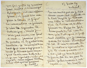 parmi les riches. Il est fier de toi »... Ses petites-filles « font la joie de la maison »... Eugène FROMENTIN, qu’elle n’a plus revu, « ni cherché à revoir a un grand succès comme peintre et le voilà riche. C’est, dit-on, sa femme qui l’a voulu impérieusement ; mais était-ce une raison pour lâcher des amis dévoués ? C’est qu’il n’est pas dévoué lui-même apparemment et c’est tant pis pour lui. Je ne connais qu’une manière de punir les oublieux, c’est de les oublier aussi »... Elle en vient à la politique et évoque les mesures répressives à la suite des élections au Corps législatif [victoire des républicains dans les grandes villes] : « Emeutes dans Paris. Fond mystérieux. Enfans perdus lancés par la police ou par un parti, on ne sait, et on ne saura que ce que le gouvernement laissera voir. Partis attentifs, regardant passer l’émeute, tous prêts à tirer profit du dénouement : c’est toujours la même chose ! »... Elle est allée à Paris pour vendre et déménager Palaiseau, lire sa pièce [L’Autre] à l’Odéon et fixer les conventions ; à présent elle rêve de reprendre la botanique... Elle ajoute : « J’aurais pu te prendre et te garder comme secrétaire, ça m’aurait bien servi sur mes vieux jours ! mais je t’aurais fait manquer la vie, une belle vie, et je me réjouis de n’être pas égoïste »... Correspondance, t. XXI, n° 14365.