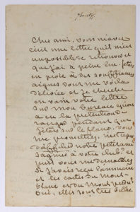 SAND George (1804-1876). L.A.S. « G. Sand », [Nohant 15 septembre 1875, à Adolphe JOANNE] ; 2 pages et demie in-8 à son petit chiffre gothique. Elle ne retrouve pas la lettre de Joanne, arrivée alors qu’elle était « en proie à des...