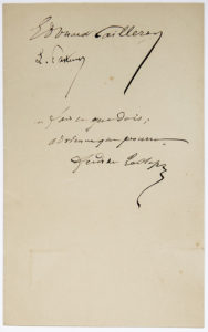LESSEPS Ferdinand de (1805-1894). P.A.S. « Ferd. de Lesseps » ; sur 1 page in-8 avec 2 autres signatures. Page recueillant les signatures d’Édouard PAILLERON, Louis PASTEUR, et cette devise de F. de Lesseps : « Fais ce que dois, advienne que...
