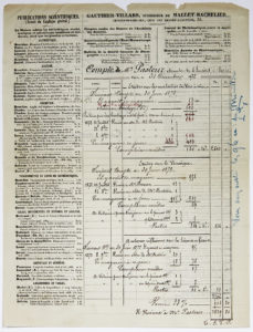 PASTEUR Louis (1822-1895). Apostille autographe signée « L. P » en marge d’un compte à en-tête de l’éditeur Gauthier-Villars, 31 décembre 1872 ; 8 mots au crayon bleu sur 2 pages en partie impr. Compte de Pasteur chez son éditeur donnant...