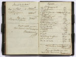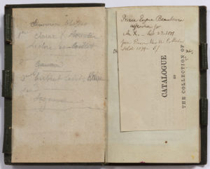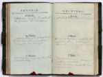 Calendrier pour l’an X, 61 ff. pour l’Agenda, dont une trentaine avec notes autographes, ainsi que sur les contreplats et les derniers ff blancs ; maroquin vert souple de l’époque, passants de même maroquin pour le crayon (usures d’usage). Agenda du futur Prince Eugène, alors colonel. Une note manuscrite en tête précise : « Cet agenda est celui de S.A.R. le Prince Eugène de Beauharnais, duc de Leuchtenberg, lorsqu’il n’était encore que colonel des Guides de la Garde consulaire ». Alors colonel des guides de la Garde consulaire, Eugène de Beauharnais y a consigné ses déjeuners à la Malmaison chez sa mère, chez Duroc, chez Bessières et le général Junot ; ses dîners avec Joseph Bonaparte, avec Lebrun et Cambacérès, mais aussi ses divers déplacements (Fontainebleau, Roanne, Lyon, etc.) Les derniers feuillets blancs sont occupés par des comptes. Citons quelques entrées en ventôse. 7 : « assaut d’armes chez moi. Le soir chez le 2d consul. Diner chez le gal Davoust ». 8 : « le soir chez Mde Talhouet. Diner chez le 2d consul. Le matin voir Mde Danesse, aller chez Boutet, chez ma sœur [Hortense] à 2 h. ½ pour la répétition ». 9 : « aller à la municipalité pour la noce de Gretty. Le soir chez le Mtre de la guerre, puis au bal masqué ». 10 : « à la Malmaison ne pas oublier d’emporter des habits pour jouer la comédie ». 11 : « inviter quelques off. à dejeuner pour le 12. diner chez M. de Talleyrand ». 20 : « à la Malmaison et chez Mde Campan le soir ». Etc.