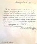 L.A.S., Londres 25 avril 1798 : « Je connoissois votre zèle, et je comptois bien sur vous, et dès que j’aurois obtenu du Gouvernement Anglois la permission que je sollicite vivement de lui montrer la reconnaissance que nous lui devons des généreux secours et de l’azile qu’il nous a constamment donnés, en combattant pour lui, je comptois vous appeler sur le champ ici, pour être un de mes principaux chefs »… Louis-Joseph de Bourbon, prince de CONDÉ. L.A.S. et L.S. Rothenbourg sur le Neker 27 mars 1794, il recevra volontiers les officiers de la Marine « qui desirent se rallier a moy », et qu’il réunira au corps de l’Artillerie… – Mulheim 12 novembre 1795, il a été heureux de voir « enfin s’améliorer le sort de la Noblesse françoise qui s’est dévouée avec tant de zèle, de constance et de bravoure à combattre sous mes ordres pour le rétablissement de la Monarchie »…
