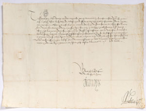 sceau (petit cachet couronné de la collection P.T. à la devise Exaltabitur). Belle lettre au Pape Léon X pour la nomination d’un cardinal. Il a déjà écrit « en faveur de nostre cher et ame cousin me Palvesin Visconte Evesque d’Alexandrie du desir et grande affection que nous avons et portons a sa promotion cardinalle laquelle nous avons tresacueur et desirons quelle puisse a la premiere creacion de cardinaulx que Vostred. Saincteté fera avoir lieu et sortir effect Tant en faveur des grans sens bonnes meurs vertuz det honnesteté de vie qui sont en luy, que des bons et agreables services que le Sgr Bernabo Visconte et ses freres nous ont cydevant faiz et font chacun jour »… [Cette missive témoigne de la bonne mise en application du concordat de Bologne daté de 1516. En effet, ce traité offre la possibilité au Roi de France de proposer les prélats de son choix pour la nomination à la fonction cardinalice. Il s’agit ici de Pallavicino VISCONTI (1497-1549), évêque d’Alessandria de 1518 à 1534, et fils du condottiere Francesco Bernardino Visconti (†1504) ; il ne fut jamais cardinal. En 1520, accusé de prendre le parti des Français, il fut condamné à mort, mais réussit à s’enfuir.]