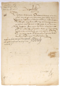 et bien amez Continuant tousjours en la mesme volonté que nous vous avons faict entendre en faveur du Sr GARNIER nostre Conseiller et auditeur en nostre chambre des comptes, et quil soit esleu ung des deux eschevins qui doibvent entrer cette année en leschevinage de nostre bonne ville de Paris, Nous avons bien voulu encores par la presente vous reiterer cette nostre intention, affin que vous nous rendiez en cela le contentement que nous esperons de vous »… Il ajoute de sa main : « vous me ferés cervyce tresagreable de vous conformer an cecy a ma volonté ».