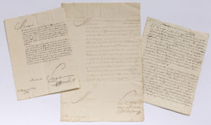 » ; 1 page in-fol., adresse avec cachets de cire rouge aux armes sur lacs de soie rose. Il souligne le désir de Sa Majesté, exprimé par les dépêches de Le Tellier, « de voir bientost vre Regiment en estat de continuer a la servir avec lhonneur qu’il a fait par le passé ; je ne doute point que vous ne fassiez de vous mesme tous les efforts pour luy donner cette satisfaction le plus promptement qu’il sera possible, et que ces Mrs les officiers ne vous secondent en ce rencontre avec leur zele accoustumé »… On joint une l.a.s. par PERRAULT, Paris 5 août 1648, concernant les intérêts du prince de CONDÉ dans une affaire contre la duchesse d’AIGUILLON (succession de Richelieu) ; et une relation manuscrite de la bataille de Lens, datée 22 août 1648, mettant en valeur l’action du prince de Condé, du maréchal de Gramont et du duc de Châtillon (3 pages et quart in-4). Provenance : archives du marquis de BRÉZÉ (vente Artcurial, 2-4 mai 2007, n° 162).