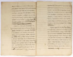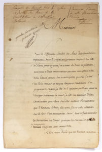 d’inventaire). Adresse des Jacobins pour préserver le bâtiment du Jeu de Paume, et immortaliser le souvenir du serment qui y fut prononcé sur un tableau offert à l’Assemblée Nationale. [Le 28 octobre, Dubois-Crancé avait présenté aux Jacobins une motion pour la commande à David, par souscription, d’un grand tableau (et de sa gravure) représentant le Serment du Jeu de Paume, prêté le 20 juin 1789 dans la salle du Jeu de Paume de Versailles par les députés du Tiers-État.] Cette adresse fut lue à l’Assemblée Nationale le 6 novembre 1790. Le manuscrit, de la main d’un secrétaire de la Société des Amis de la Constitution de Paris, est celui qui a servi pour la lecture : des barres au crayon marquent le découpage des phrases pour l’orateur ; il présente des corrections de la main de Mirabeau ; il fut ensuite envoyé à l’impression, comme en témoigne la note : « Envoyer l’epreuve à M. Mirabeau l’aîné. Vafflard ». La Société des Amis de la Constitution veut attirer l’attention des députés « sur le sort d’un monument sacré » qu’il faut sauver des ravages du temps, ce lieu qui a servi d’asile aux « dépositaires de la Souveraineté du Peuple, contens de pouvoir graver sur les murailles les droits éternels des nations, la première explosion de leur courage fut un serment solemnel de ne se séparer qu’après avoir conquis la Liberté » ; ce tableau historique du 20 juin 1789, « c’est à l’immortel pinceau, c’est à l’impérissable burin à le retracer ». L’adresse conclut : « Ô premiers Législateurs des François ou plutôt premiers orgânes des loix de la nature couronnez nos vœux, en agréant l’hommage du tableau qui représentera votre héroïque serment ! il sera éternel ce monument dédié au tems & à la Patrie, si, placé dans la salle même de vos assemblées, il a sans cesse pour spectateurs des hommes capables d’imiter le patriotisme dont il retracera l’image ». Le manuscrit présente une douzaine de corrections, modifications et additions de la main de Mirabeau, qui a apporté au texte un certain nombre d’améliorations stylistiques : interversions, expressions plus heureuses (« indifférence » à la place d’« inconséquence », « amoncelées » à la place d’« élevées », « ces palais, orgueilleuse retraite des dominateurs de la terre » à la place de « ces palais somptueux, mais impénétrables des maîtres de la terre », « à jamais » à la place de « toujours »), augmentation du beau mouvement oratoire où est représenté le « peuple immense » se pressant autour de la salle du Jeu de paume à Versailles, attentif « comme s’il avoit pu voir à travers les murs ; silencieux », etc.