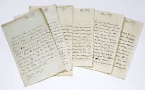 MONTHOLON Charles-Tristan, comte de (1783-1853). 6 L.A., mars 1809, à Albine de VASSAL, baronne Daniel ROGER ; 17 pages in-8. Correspondance passionnée du tout début de sa relation avec sa maîtresse et future femme, Albine de Vassal. [Albine...
