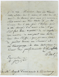très à mon gré ». Pour le remercier, il lui fait remettre « une boîte à mon Chiffre que je vous prie de garder comme un souvenir et un hommage de mon contentement. »…