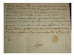 Précieuse lettre signée de la main du Roi à l’occasion de la nouvelle année… « Mon cousin. J’ai vu avec plaisir pour votre lettre du Ier xdre les témoignages de la sincérité des vœux que vous avez formez pour moi au commencement de cette année… ». Inscription manuscrite au dos : « A mon cousin le Cradinal Calino ».