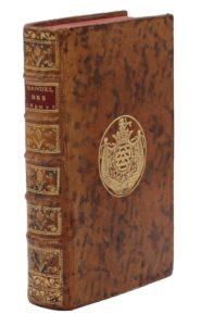 Paris, Lottin le Jeune, 1764. In-12 (164 x 97 mm), veau marbré, armes dorées au centre des plats, dos à nerfs et caissons ornés, pièce de titre en maroquin rouge, gardes de papier marbré, tranches rouges, étui en Plexiglas (Reliure de l'époque).Édition originale.