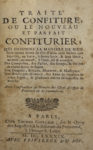 [CONFITURE] — TRAITÉ de Confiture, ou le nouveau et parfait confiturier ; qui enseigne la manière de bien faire toutes sortes de confitures tant sèches que liquides, au sucre, à demy sucre, & sans sucre, au miel, au moust, à l'eau, sel & vinaigre.