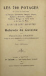 GRANDI (Ferdinand) — Les 700 potages ou l'art de préparer les soupes, consommés, bisques, purées, garbures, semoules, légumes, farineux, potages de toutes sortes et de tous les pays. Suivi de cent recettes des relevés de cuisine.