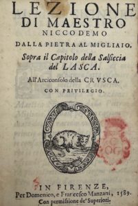 [GRAZZINI (Anton Francesco)] — Lezione di maestro Niccodemo dalla Pietra al Migliaio sopra il Capitolo della salsiccia del Lasca.