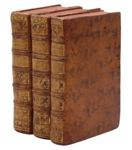 Paris, Saugrain fils, 1748-1750. 3 volumes in-12, basane fauve de l'époque, dos ornés, tranches rouges (Reliure de l'époque).Célèbre livre de cuisine, illustré de 23 planches montrant les tables dressées.