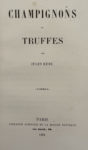 La première partie décrit les champignons comestibles, leur culture et conservation, les mets à base de champignons, et les champignons les moins usités. La deuxième traite des champignons vénéneux et des remèdes. La troisième aux truffes: histoire naturelle, les truffières, recettes de truffes et les moyens de les conserver. Bien complet du dernier feuillet donnant la liste des planches.