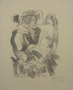 8° diner, 18 juin 1948. A La Reine Christine, Hote d'honneur Malvina Hoffman. Lithographie signée de Benno Vigny. N°1. Dédicaces à Georges Villa de Malvina Hoffman, E. Dufour, B. Vigny, E. Guignard et P. Jouve.